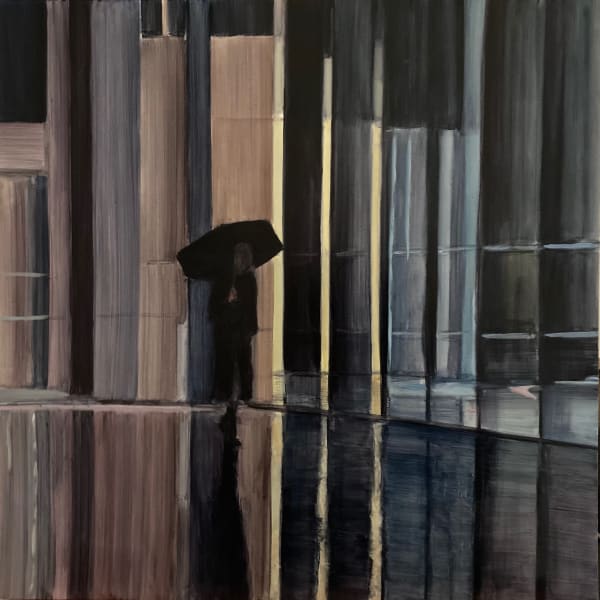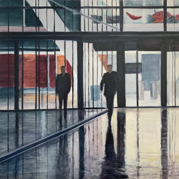 • Gro Thorsen, Leaving the Office, oil on aluminium, 50 x 50 cm, 2021