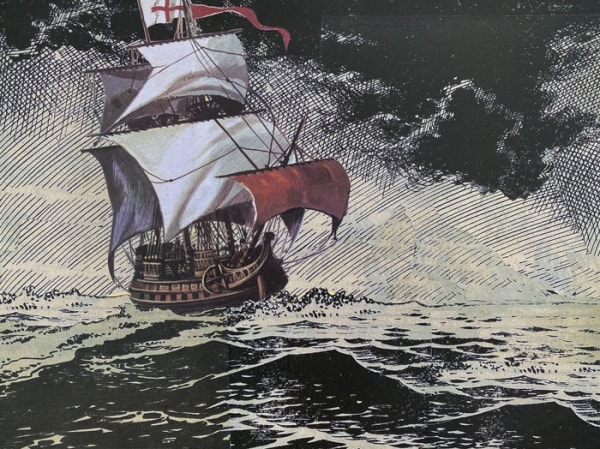 • Chris Orr, Ships that pass in the night', detail, watercolour and pencil on paper, 36 x 101 cm 2025